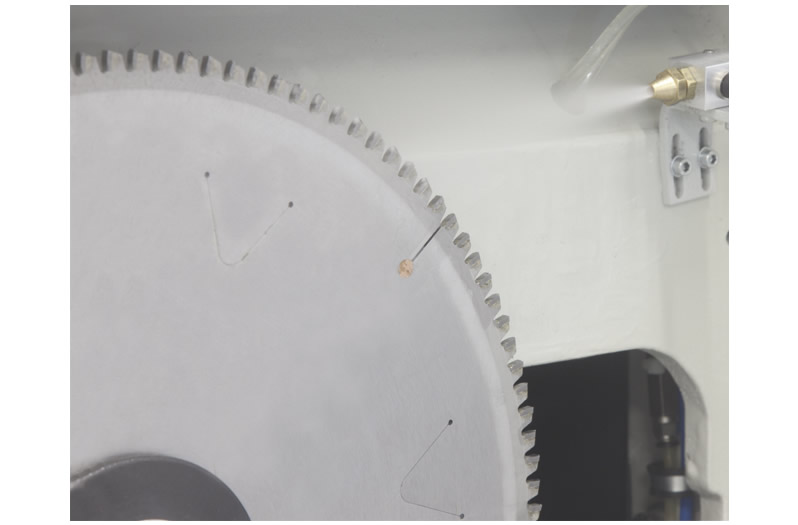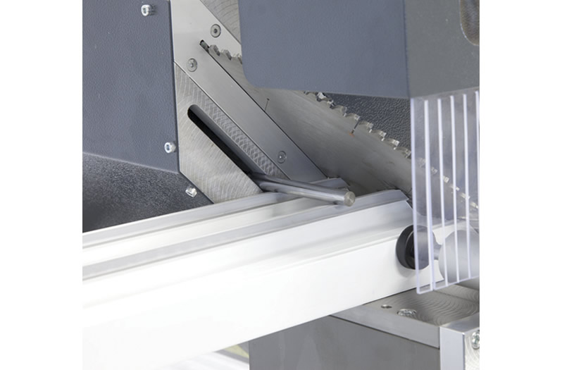 The 450 mm. saw blade diameter enables to cut wide profiles as well as two 80 mm. profiles at the same time.